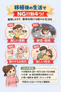 判定結果に左右する事があります。当院は可能な限り結果を出すために移植後でも施術を推奨します。